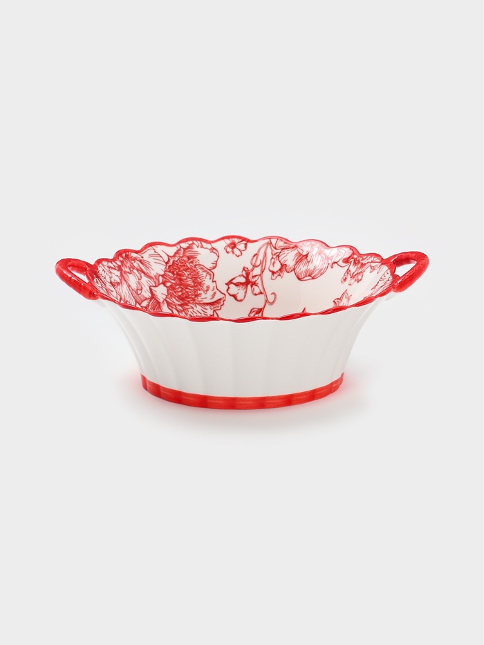 Бульонница с ручками Botanica, 20×17×6 см, фарфор, белая, красная