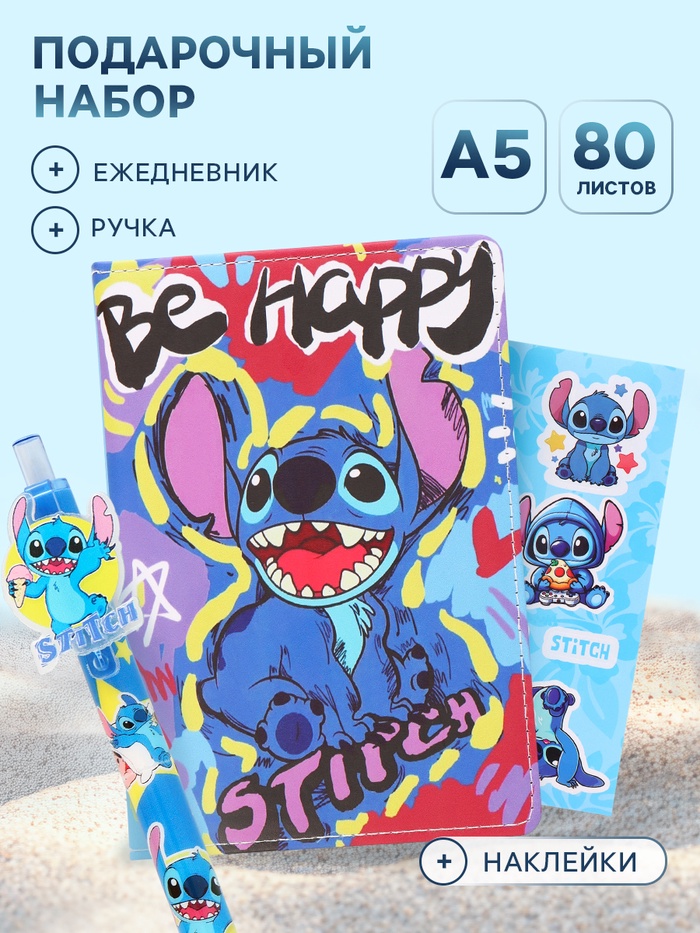 Подарочный набор: ежедневник А5, 80 л, ручка и наклейки Стич
