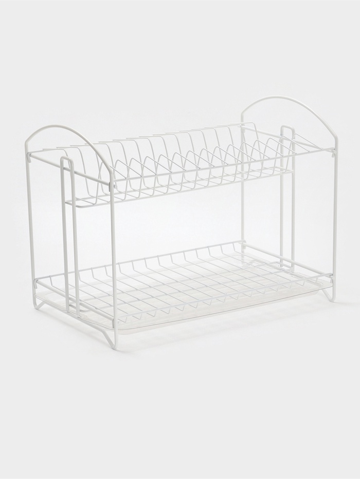 Эта сушилка — для тех, кто ценит гибкость: разобрал, убрал, собрал снова. Два яруса упорядочивают посуду, поддон удерживает влагу, а белый цвет добавляет ”свежести” даже в самый загруженный день. Чистота — это не усилие, а логичный результат продуманного решения.