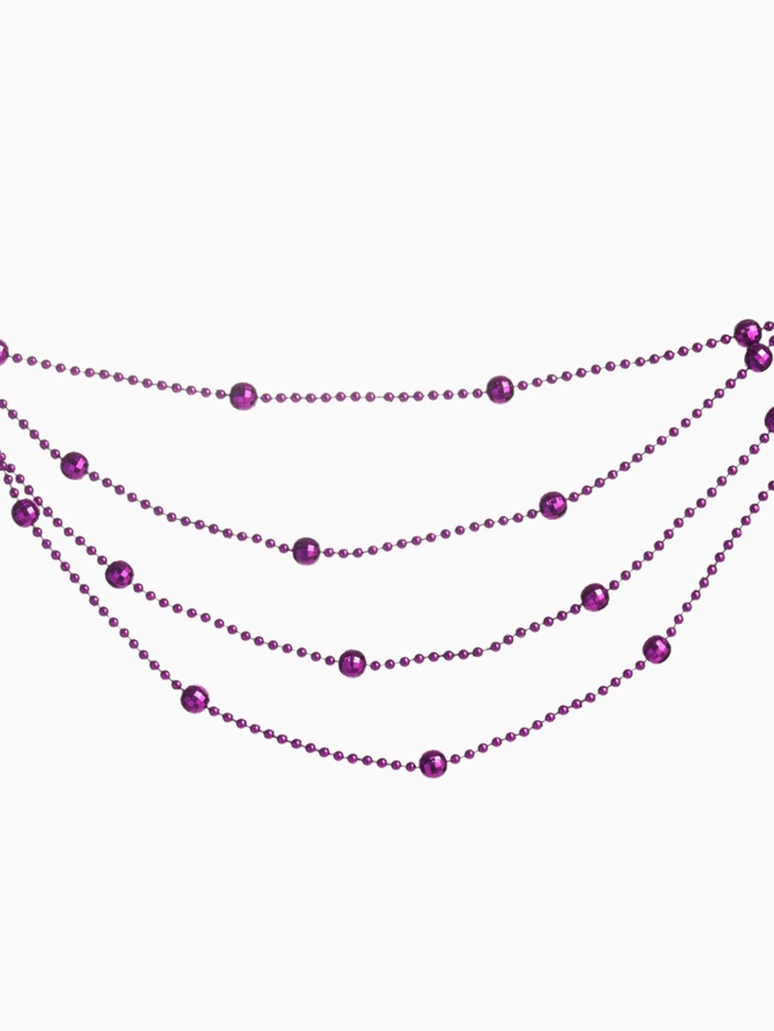 Эти фиолетовые новогодние бусы длиной 2,7 метра станут ярким акцентом в праздничном декоре. Их однотонный цвет и классическая форма создают элегантную атмосферу и легко сочетаются с другими украшениями для елки и интерьера.