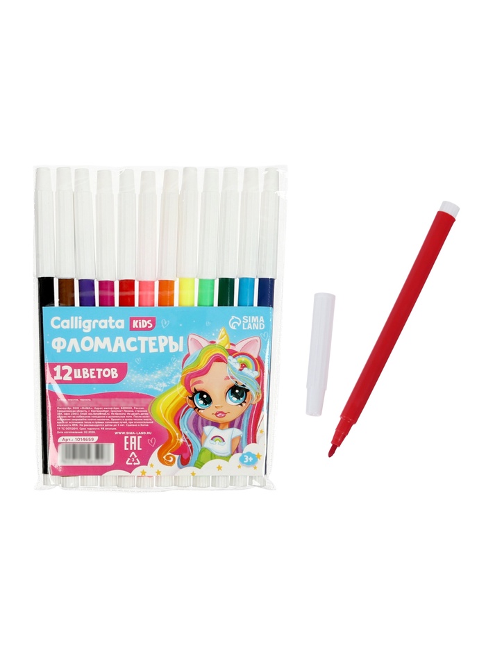 Фломастеры 12 цветов Calligrata «Принцесса», невентилируемый колпачок