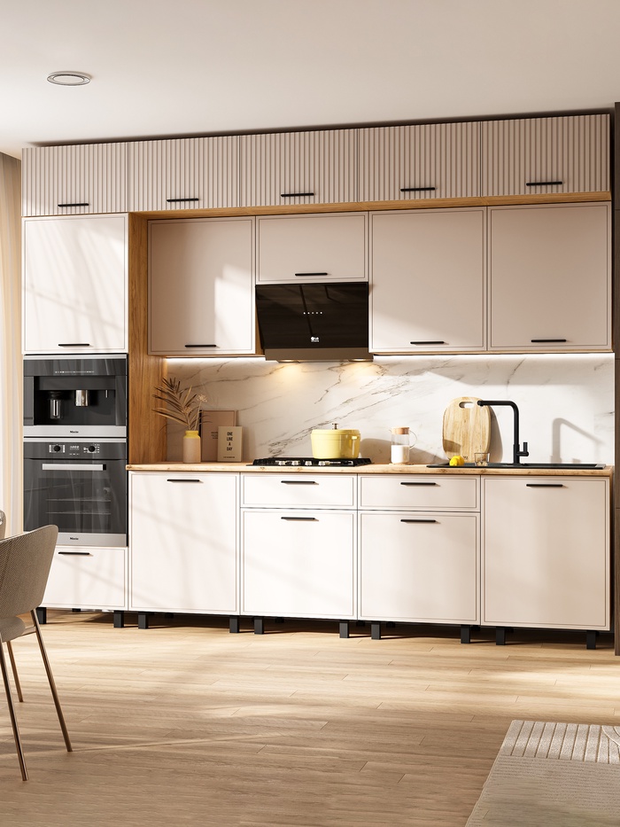 Кухонный гарнитур трёхуровневый в потолок «Бьянка», 3000 мм, цвет кашемир/дуб крафт/дуб вотан