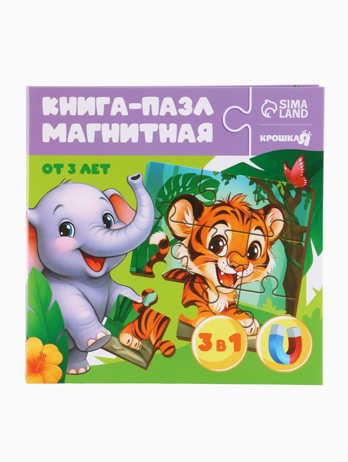Магнитные пазлы для малышей «Зверята», книга 3 в 1, Крошка Я