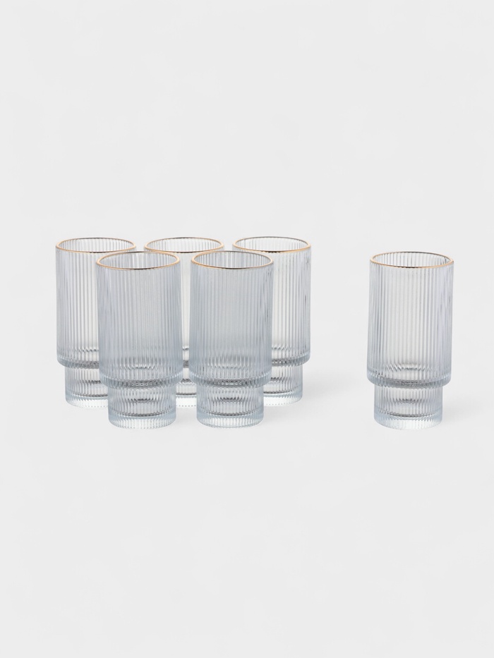 Элегантная сервировка стола! Набор стаканов – комплект из шести стеклянных ёмкостей для напитков. Он подходит для повседневного использования на кухне или во время трапез.