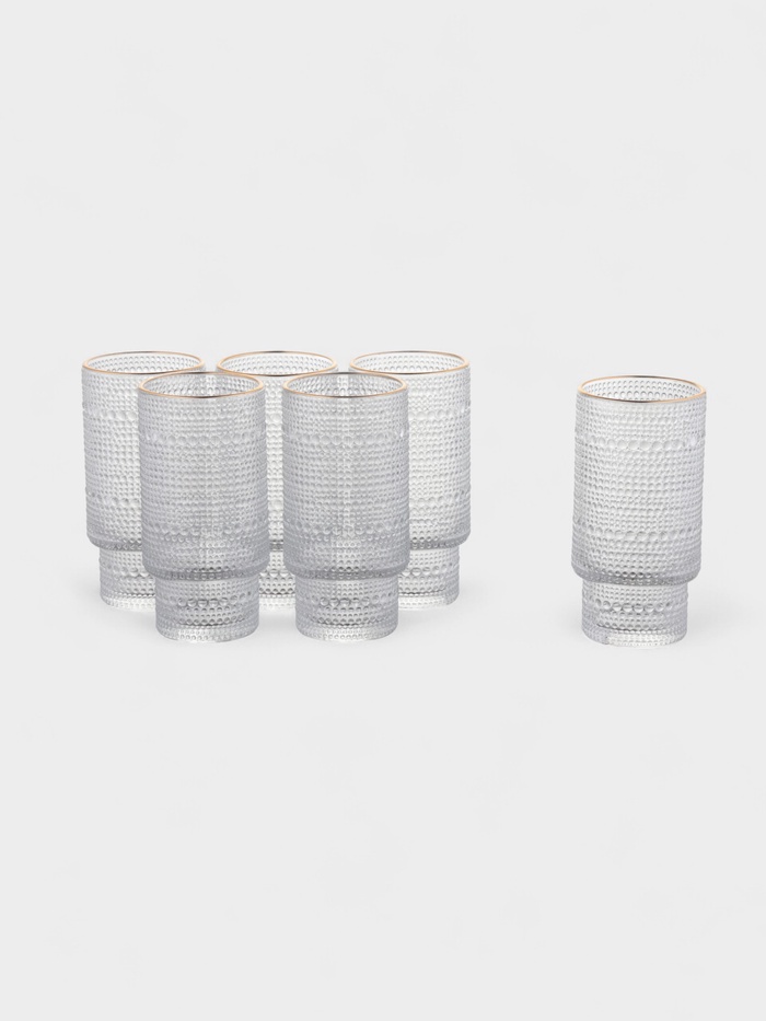 Элегантная сервировка стола! Набор стаканов – комплект из шести стеклянных ёмкостей для напитков. Он подходит для повседневного использования на кухне или во время трапез.
