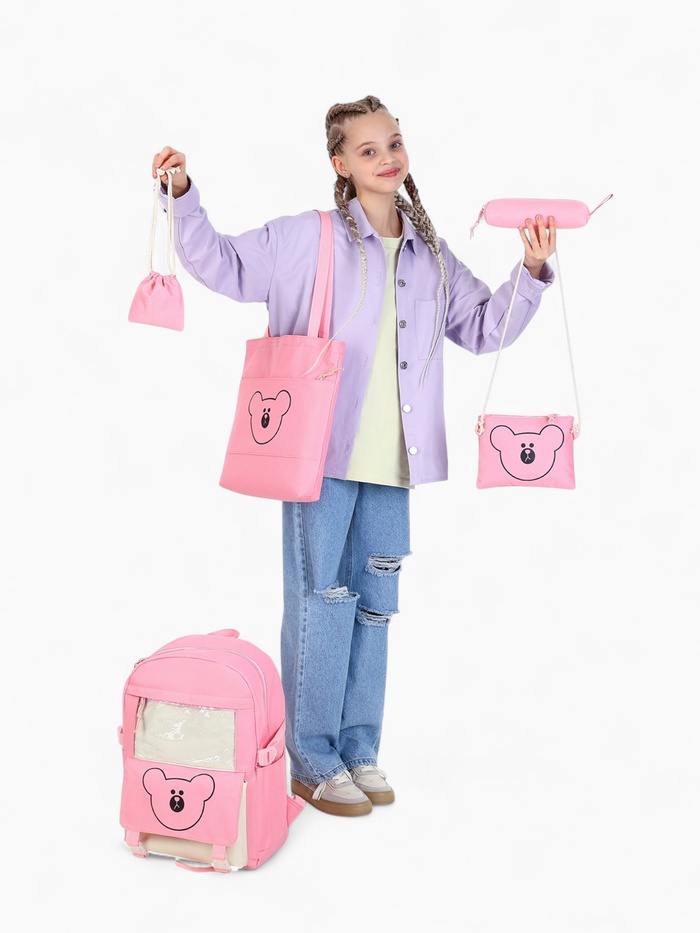 Школьный набор 5 в 1: рюкзак, шопер, сумка, пенал, мешочек для монет, розовый