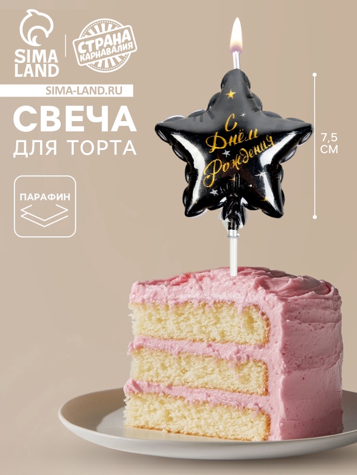 Свеча в торт на шпажке «Воздушный шарик», 7.5 см, чёрная с золотом