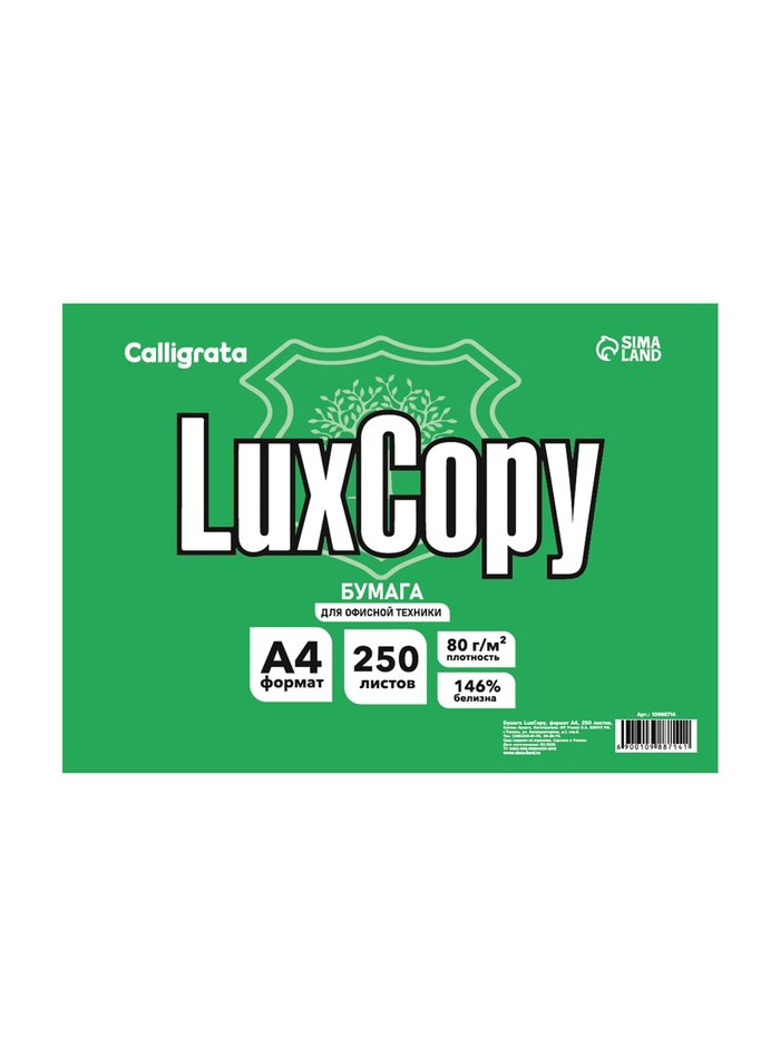 Бумага «LuxCopy», А4, 250 листов, 80 г/м², белизна 146% CIE, класс С