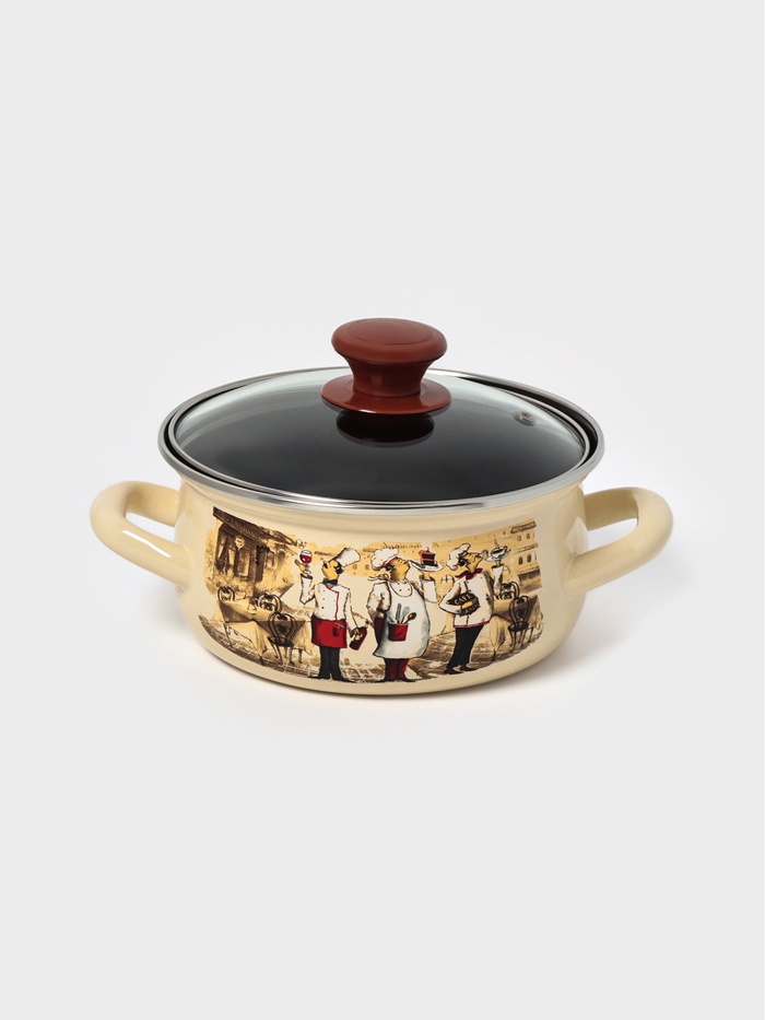 Кастрюля эмалированная «Сомелье», 1.5 л, цвет слоновой кости