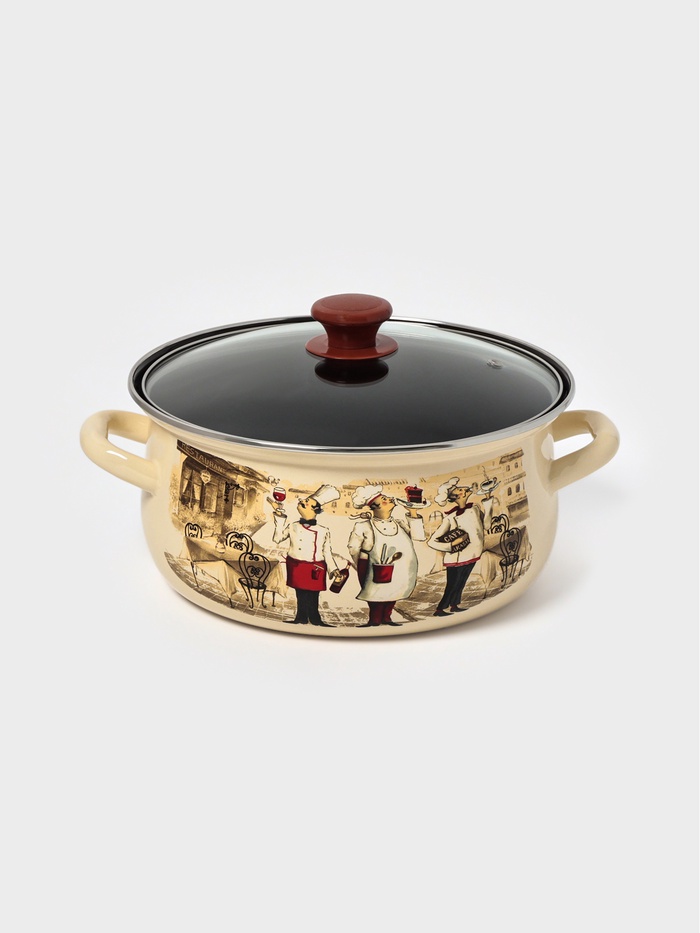 Кастрюля эмалированная «Сомелье», 4 л, цвет слоновой кости