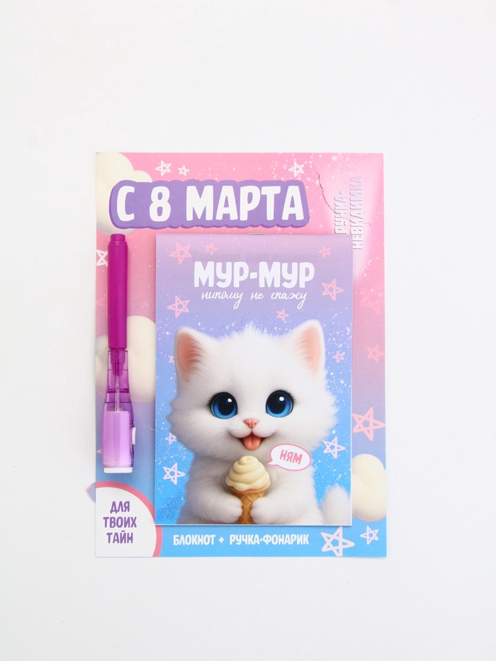 Набор: ручка с фонариком и невидимыми чернилами, блокнот А6, 16 л "С 8 марта"