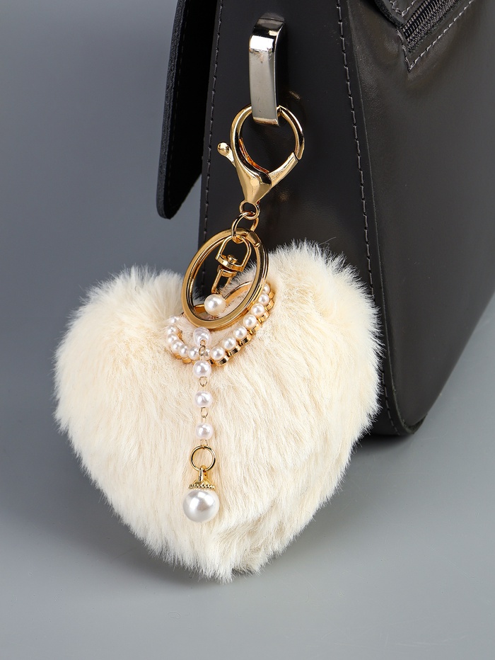 Пушистик на кольце "Сердце с жемчужной подвеской" белый 13х9 см