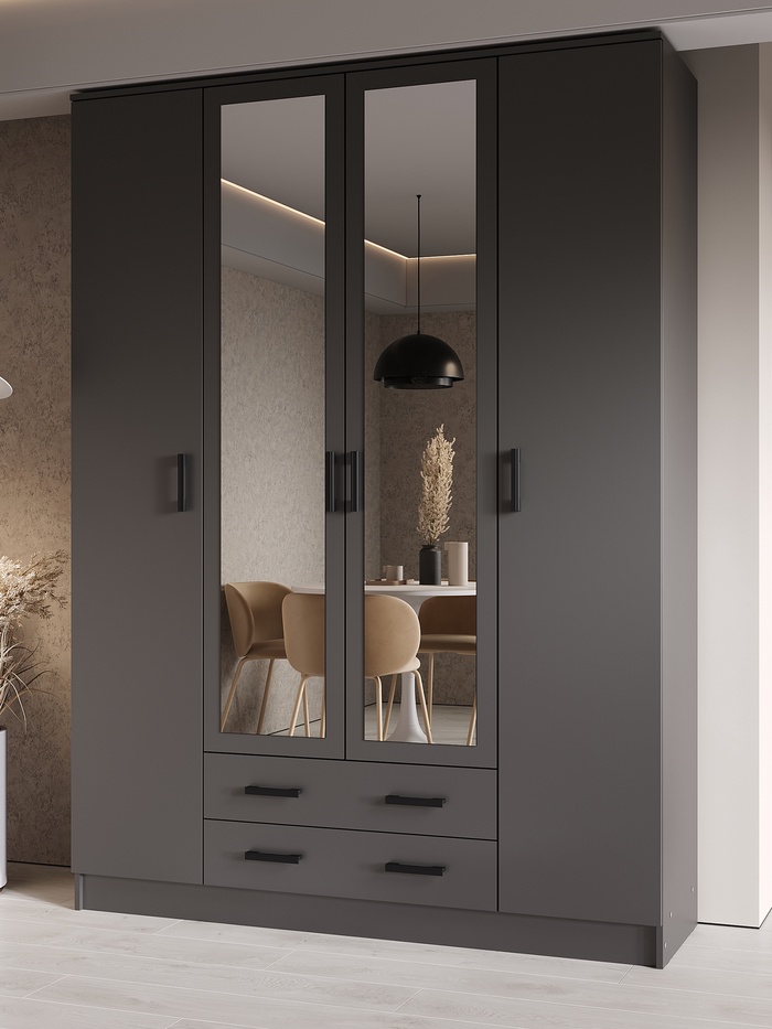- Четыре двери: обеспечивают доступ ко всей площади шкафа, позволяя быстро находить необходимые вещи.