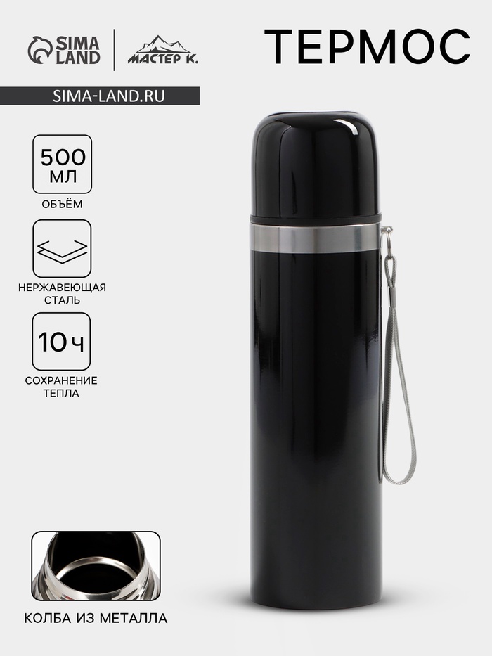 Термос гильза Мастер К, 500 мл, 24×7 см, с кружкой, с помпой, сохраняет тепло 10 ч, нержавеющая сталь, чёрный